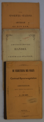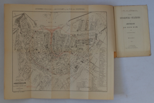 "Van den Schrijver" in pen op titelpag. + De verbetering der wegen van en naar het Centraal-Spoorwegstation te Amsterdam. A.L. van Gendt, C.L. Brinkman, Amsterdam, 1872. 15 p., gelithogr. kleuren kaart, orig. kart. omslag - en een andere.