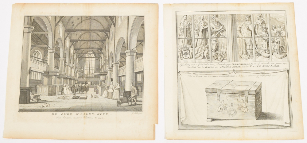 ± 30 prints of Amsterdam churches, interiors and plans and ± 50 prints of Amsterdam monasteries, all in copper engraving, various sizes and several double, 17th and 18th century.