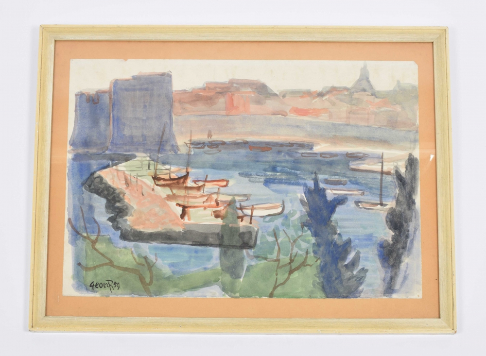 Watercolour. Signed and dated 1970. Framed in mount. 64 x 47 cm + Georg Ruijter (1913-1982), harbour view. Signed and dated 1959. Framed in mount. 59 x 42 cm.