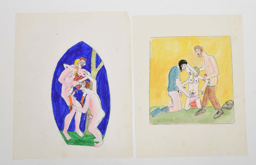 Series of 15 pornographic drawings, France, 60s-70s. Each ± 25 x 20 cm.