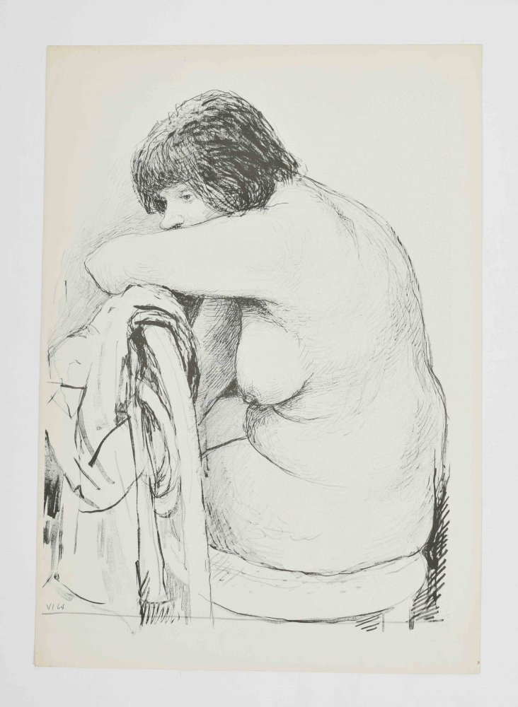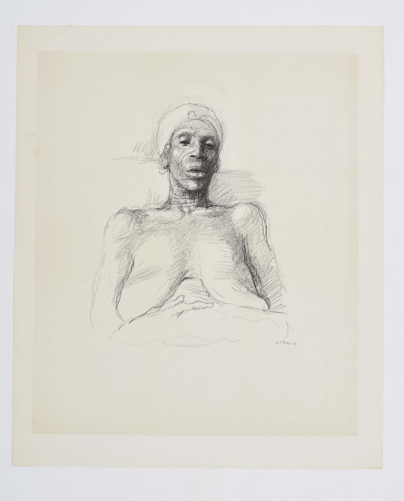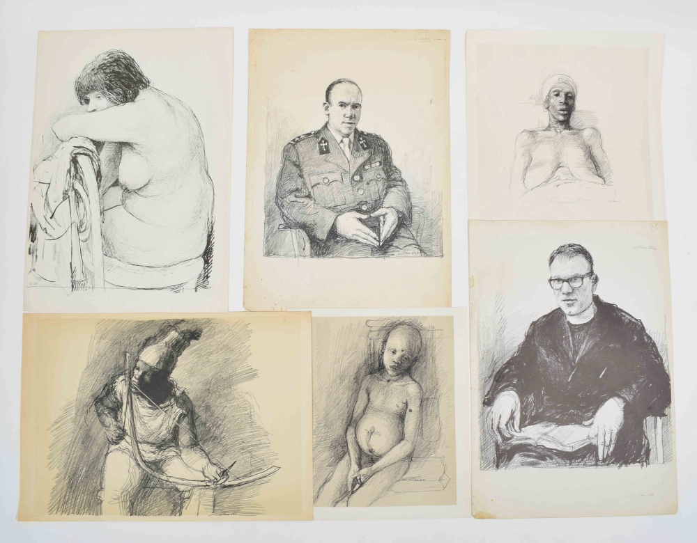 G. Wentholt, chaplain. Rotaprint, 1964. 50 x 35 cm + Father Joost Reuter with "Fanny Hill". Rotaprint, 1964. 49.5 x 34.5 cm + sitting nude. Lithography, 1964. 49.5 x 35 cm + African girl, Maria, tattooed on her belly. Lithography, 1965. 34.5 x 30 cm - and 2 other lithographs.