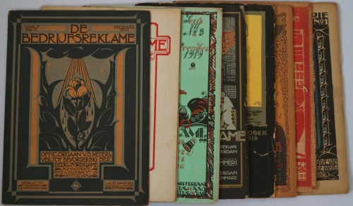 See the Dutch description: Officieel orgaan van de Nederlandse Vereeniging ter bevordering der bedrijfsreklame, Amsterdam. Cliché's Roeloffzen, Hubner & v. Santen, Amsterdam, drukkerij Levisson 's Gravenhage. 15 nummers tussen 1919 en 1921 met o.a. houtsnedes van Chris Lebeau, Albert Hahn, Frans Tergast, Daan de Vries, Aart van Dobbenburgh, Daan Hoeksema en Joan Collette.