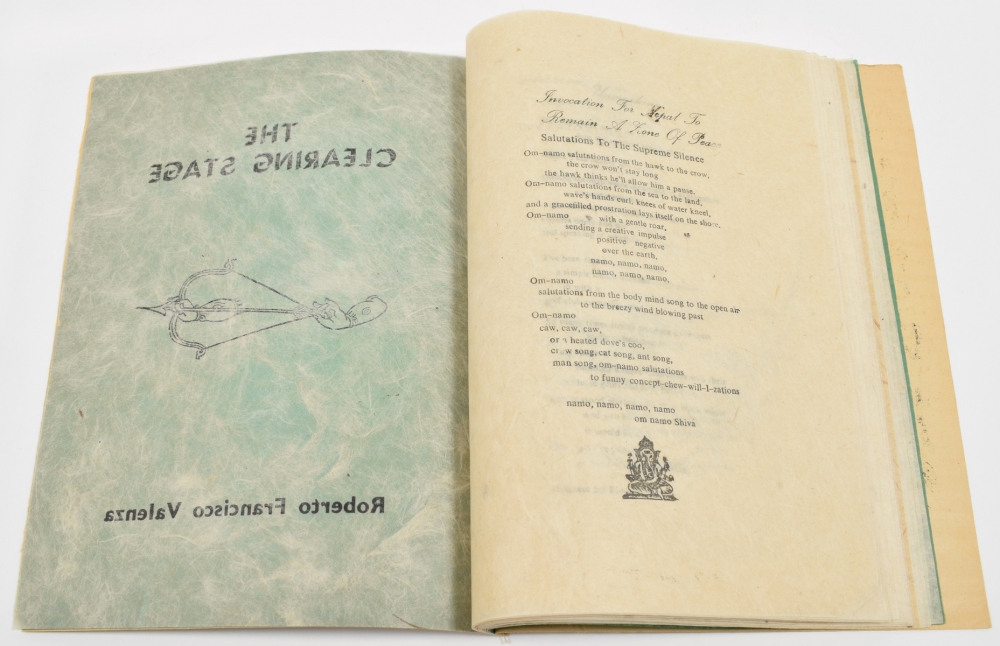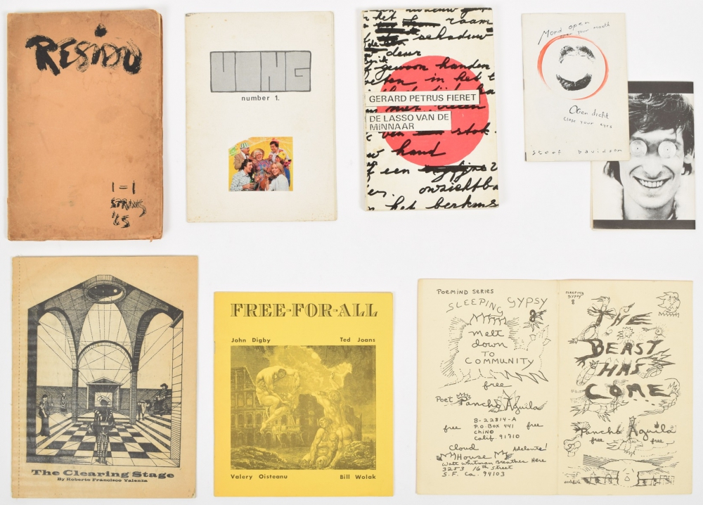 Roberto Francisco Valenza, The Clearing Stage. Primordial Marrow, 1976. Bardo Matrix special edition. No. 93/450, signed + Free For All. John Digby, Ted Joans, Valery Oisteanu & Bill Wolak. The Somniloquist's Press, 1978. Signed + Ving number 1. Maidstone, Outcrowd, 1980. Stapled. Rare - and 5 more.