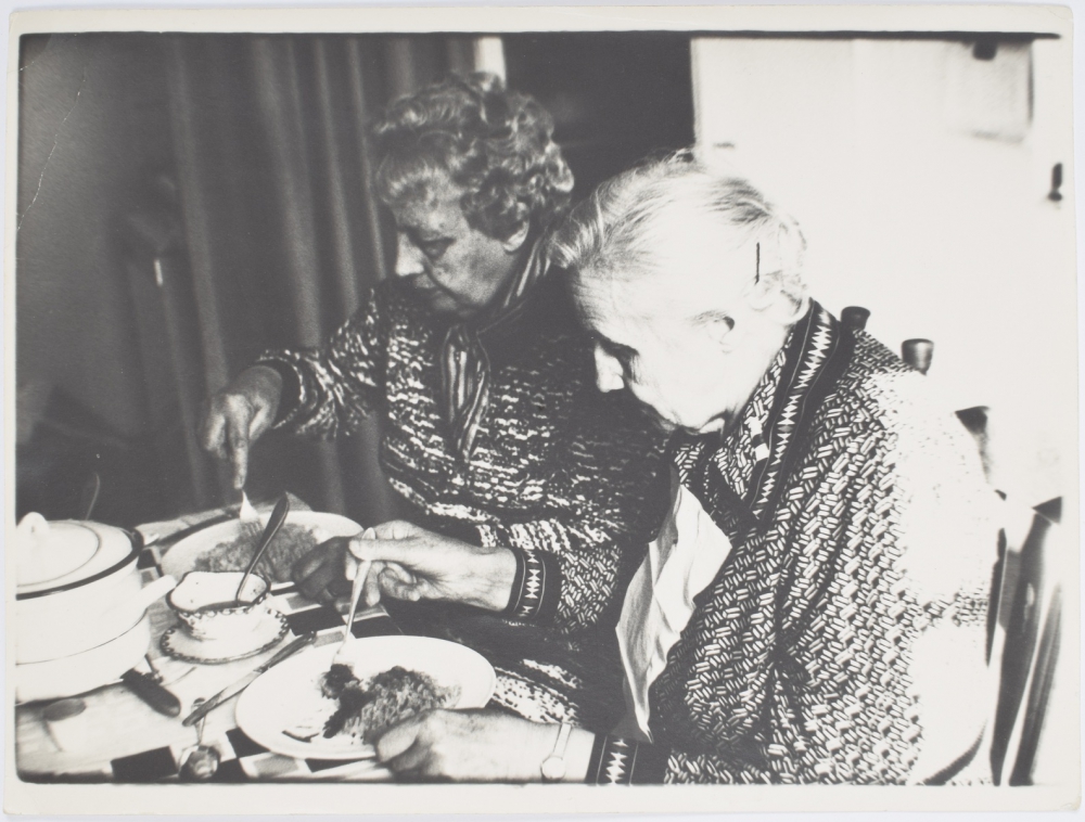 "Tante Jo Fiet met moeder". Gelatin silver print. 18 x 24 cm. Text on verso in pencil.