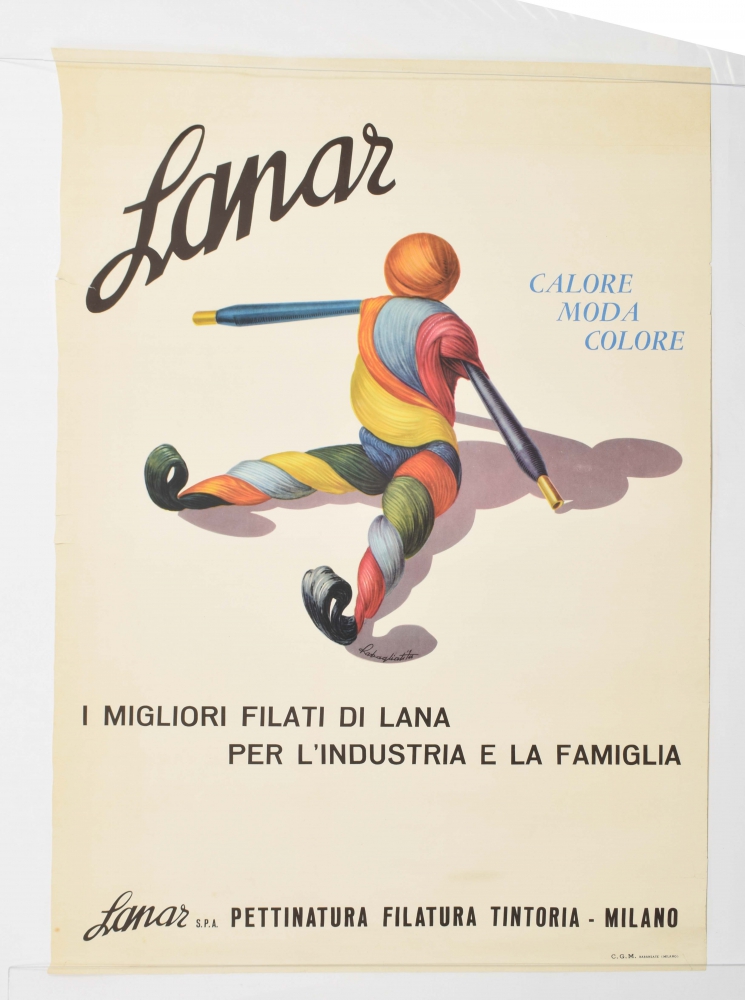 Lanar. Calore Moda Colore. I migliori filati di lana per l'industria e la famiglia. Milano, 1946. 100 x 70 cm. Clean copy.