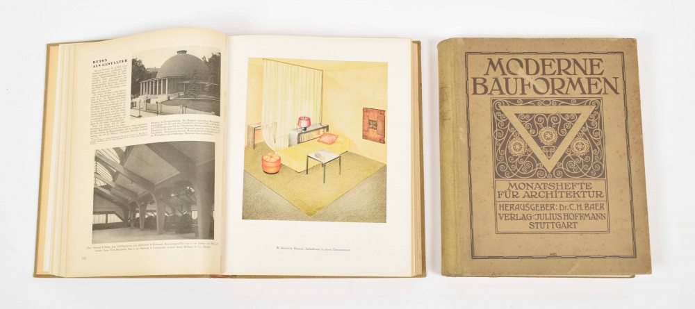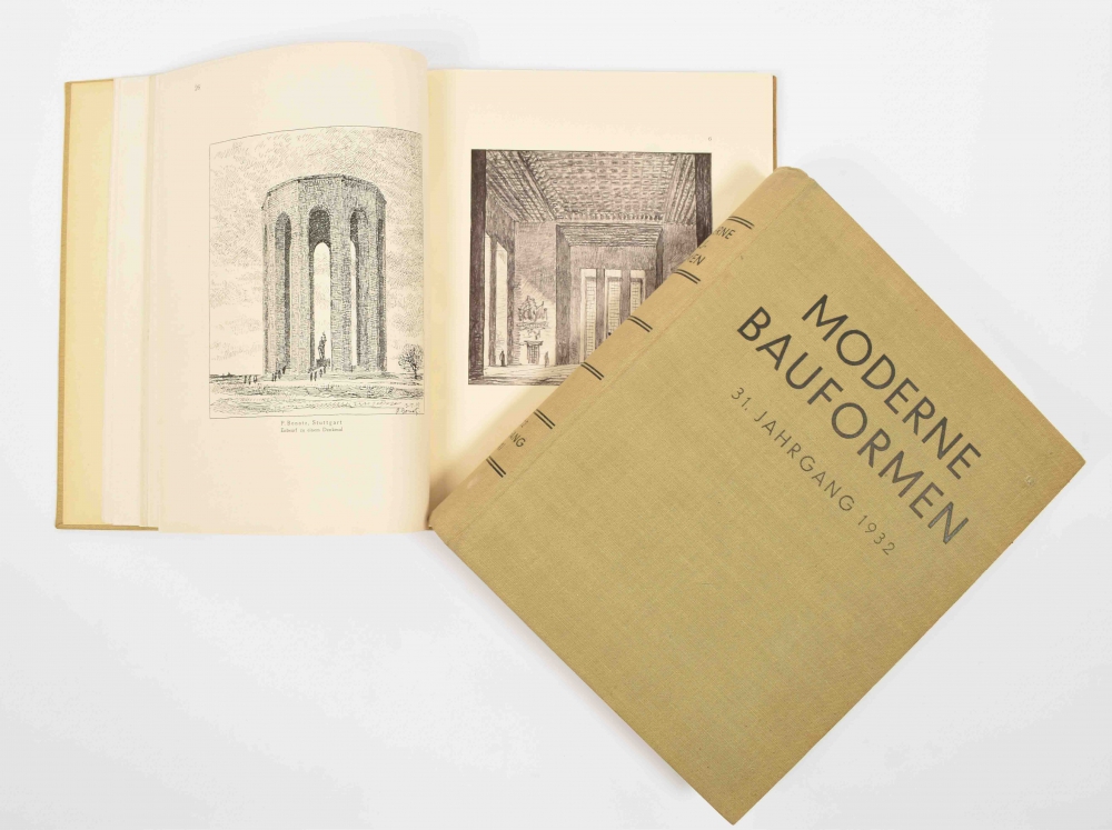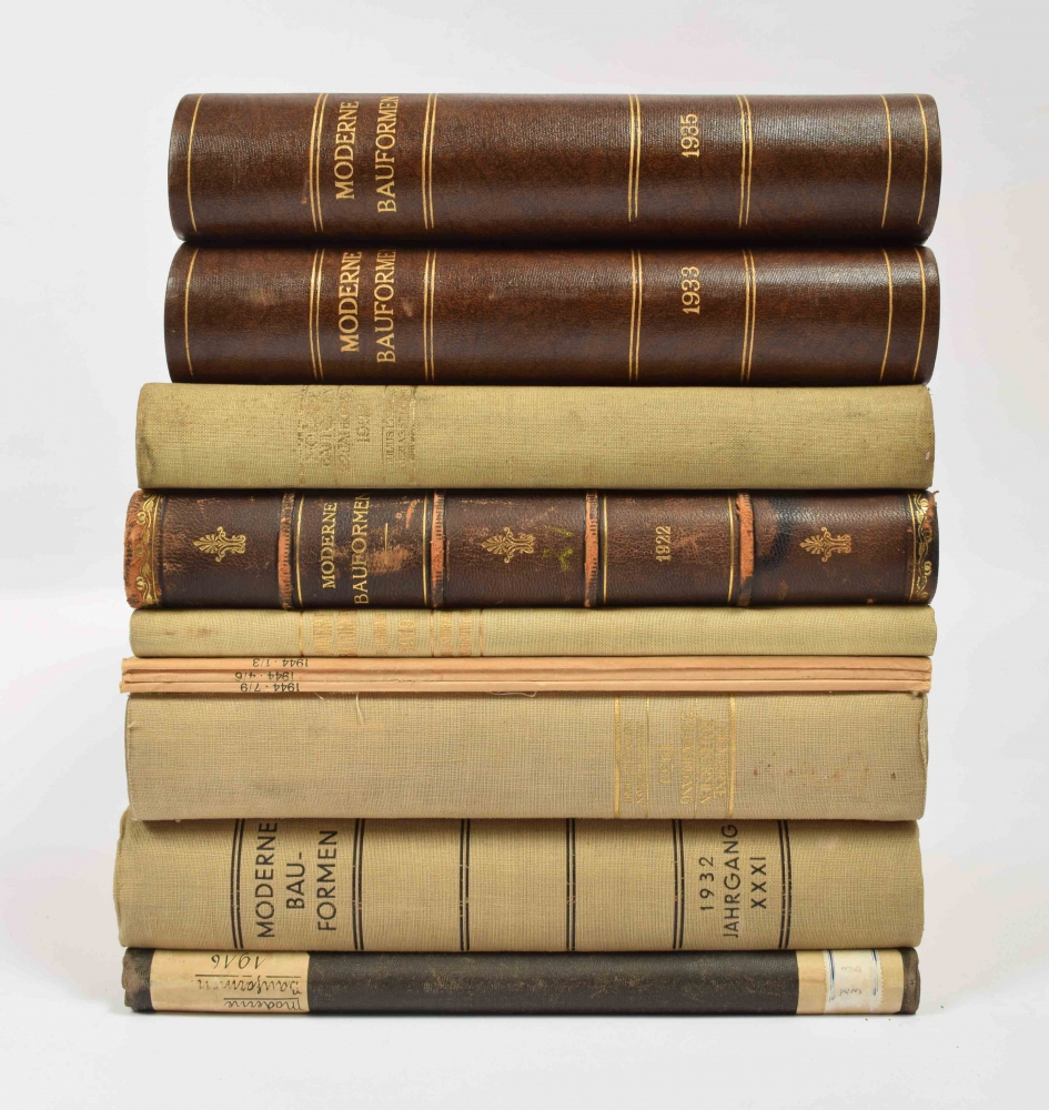 Monatshefte für Architektur und Raumkunst. Stuttgart, 1904-1944. Years 4-43 (last year). Years with various bindings. Final year in orig. pictorial dust jacket.