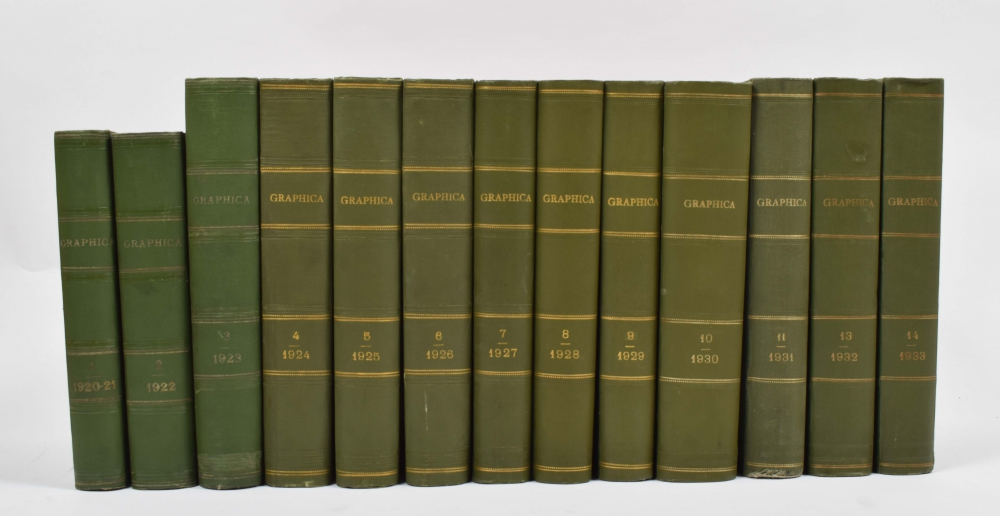 Bulletin bi-mensuel de la Fédération Patronale Belge des Industries du Livre. Vols. 1-14. Bruxelles, 1920-1933. Uniformly bound set, with original wrappers preserved. With various fine advertisements.