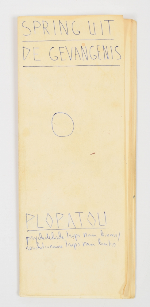 Psychedelische trips naar binnen/ revolutionaire trips naar buiten. Plopatou, c. 1972. (82) p. with text in ballpoint. Loose-leafed in manuscript wrapper, 27.5 x 10 cm.