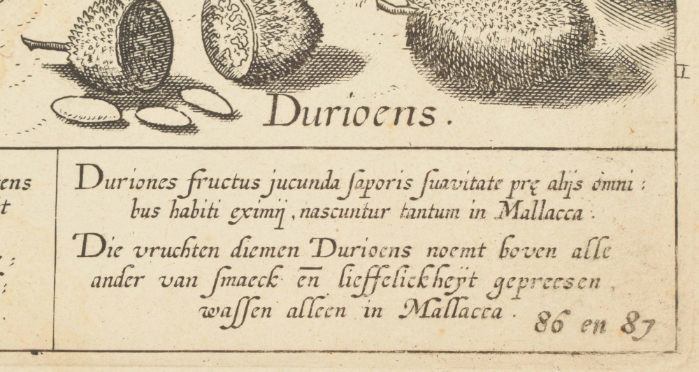 Minimal hole, else with smoothened middle fold and other folds. Good impression with lovely margins. Rarely offered loose print from Van Linschoten's iconic book. The lower right corner shows an engraved Roman "I", which we did not find on other copies shown online.