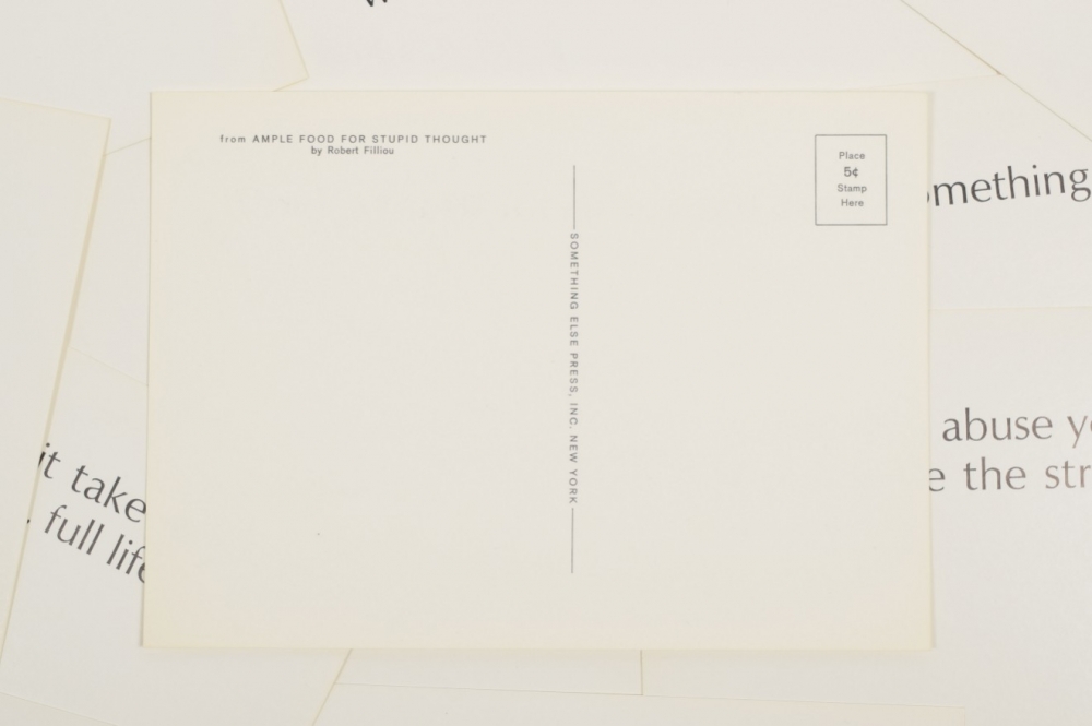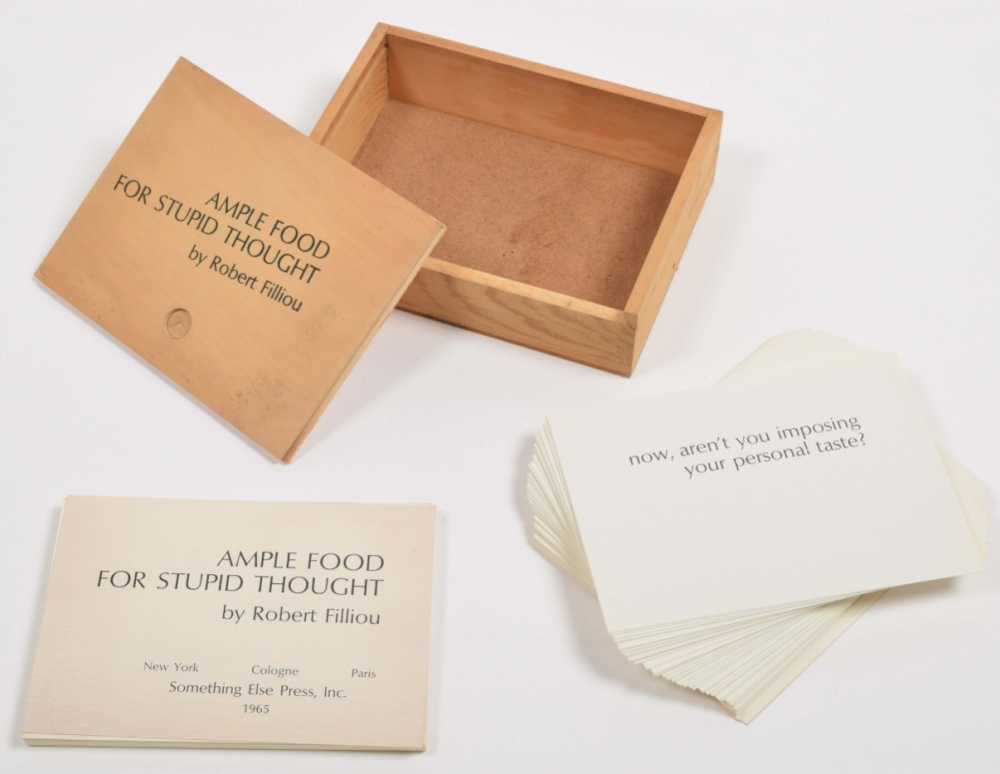 New York/ Cologne/ Paris, Something Else Press Inc., 1965. Wooden box containing 96 offset postcards. Box 15 x 20 x 5 cm, sheets 13 × 18 cm.
