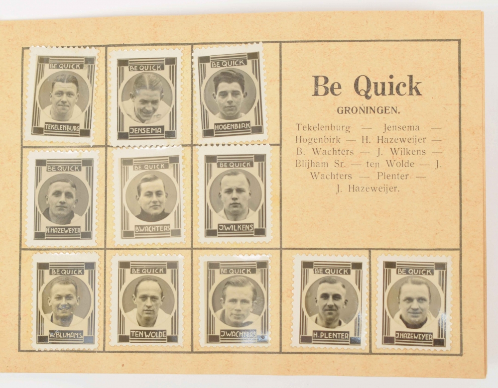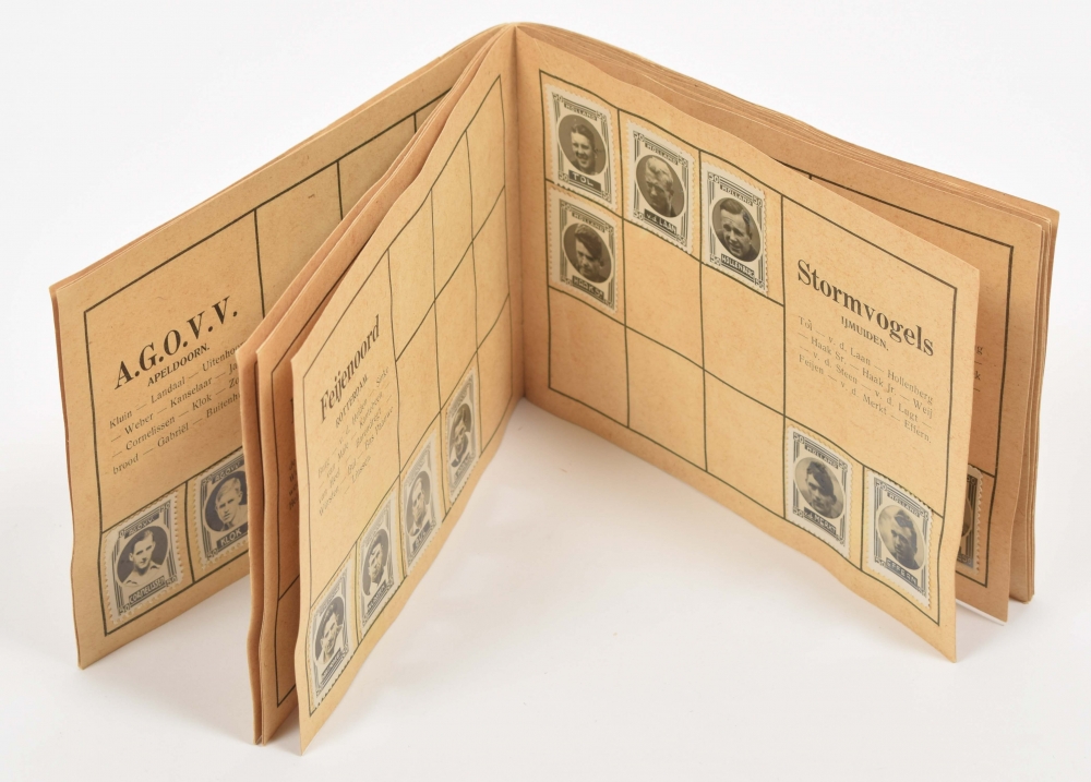 Circa. 1930. Very rare album, incomplete with 141 photo seals of football players (and several other sports), and several dozens of double picture cards.
