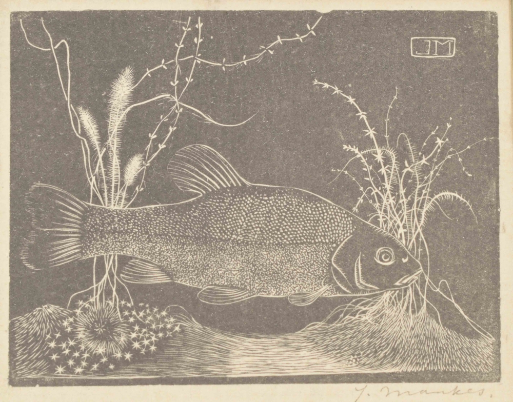 "Zeelt" (Tench). Wood engraving, 1917. 113 x 86 mm. Monogrammed in the plate, name in pencil lower right. In mount.