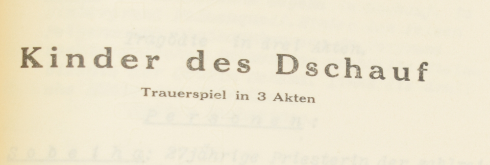 Contents good, binding affected by damp. Highly curious and extremely rare publication, the first (presumably only) volume of 3 planned volumes on the Egyptian playwright, writer and poet. The introduction by editor Amin Dablan (Domet's brother) is followed by the first chapter, discussing the "Neuarabische Literatur" and also by Dablan, which from leaf 11 on discusses Asis Domet. Domet (1890-1943) was born into a protestant Arabic family in Cairo. He stood apart from nearly all Arab writers by being supportive of the Zionists.
