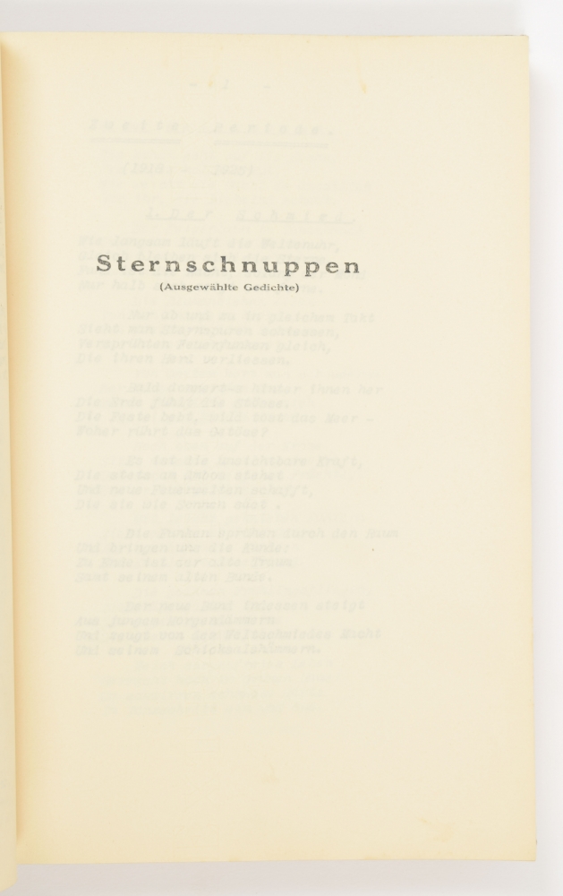 No place, publisher or date (c. 1933), 5 parts in one vol., (3),50,(2); (1),96; (1),102; (1),34; (1),43 leaves stencilled on one side, with photographic frontispiece portrait, plain cloth with gilt spine title, 4to.