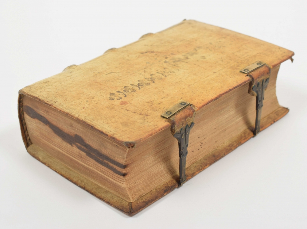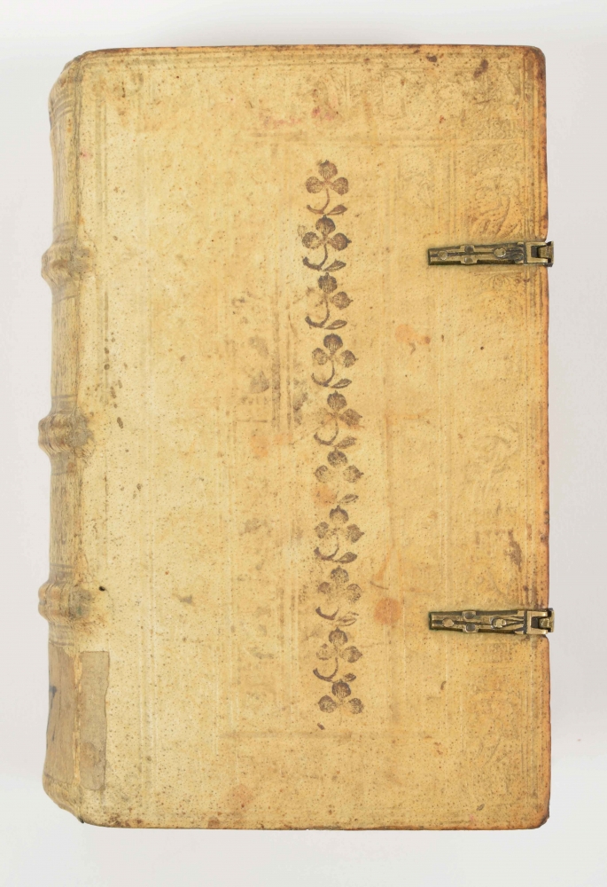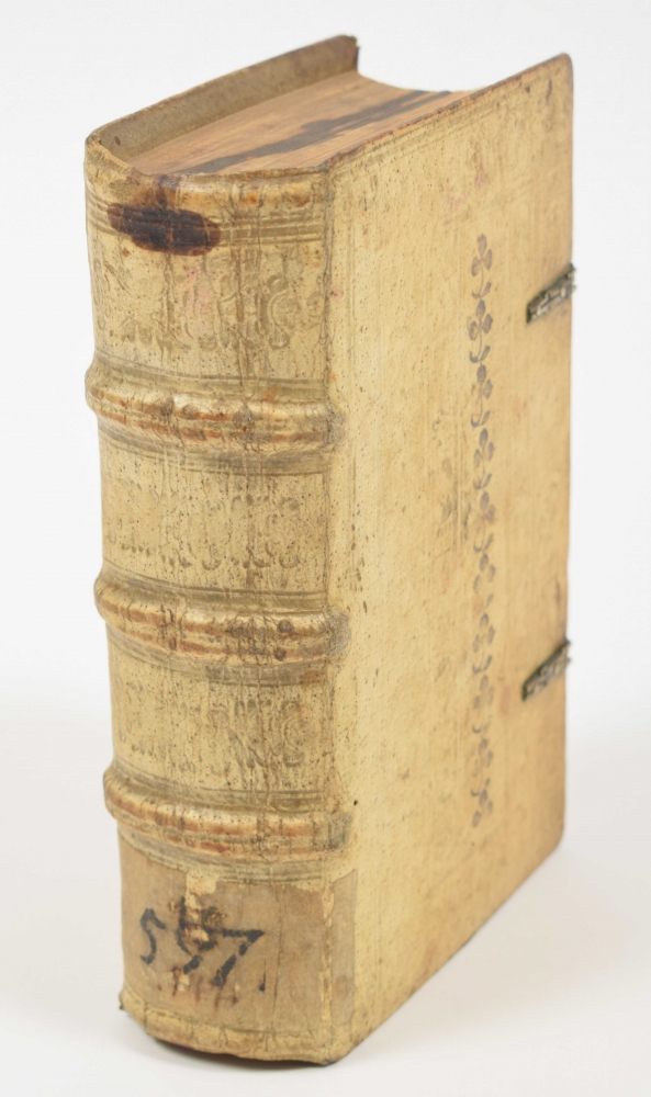 Occ. with contemporary annotations in pen. With contemporary/ old owner's marks such as old label to spine. Accidental ink spill visible on top edge and spine head. The boards include portraits of writers such as Virgil, Ovid, Lucretius and Horace as well as those of Renaissance rulers such as Carolus and Franciscus. On the inside of the board an anti-theft proverb has been noted: "Fur alio tendas nulla hic occasio lucri hi laqueo duras frangere colla lucrum". Loosely translated: "Thief, go somewhere else, here is no opportunity for profit. Here you risk the profit of breaking your neck in the noose." This exact phrase appears in several books from the library of Claude Guilliaud, see e.g. the Catalogue des livres de la bibliothèque d'un chanoine d'Autun, Claude Guilliaud, 1493-1551 (Autun, 1890), p. 157. Below the phrase is included the owner's name "Guilielmus Brandenburg B[ayreuth]" (1678-1726). On the title page the letters "G.W.B.D." have been stamped, for "Gräflich von Waldbott-Bassenheim'sche Domanialverwaltung". The counts of Waldbott-Bassenheim inherited the famous library of the monastery at Buxheim, which was shut down in 1803. The library was sold at auction in Munich in 1883 and 1884.