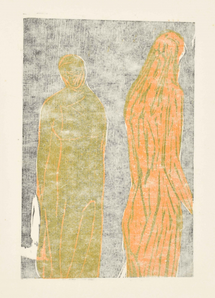 Hyppolytushoef/ Bergen, the poet/ artist, 1979, issued in 100 numbered and signed copies (this is no. 69), woodcut title page and 5 colour woodcut plates, each with facing letterpress poem and with letterpress colophon on handmade paper, with intervening leaves numbered 1-5, original gilt-lettered cloth, folio.