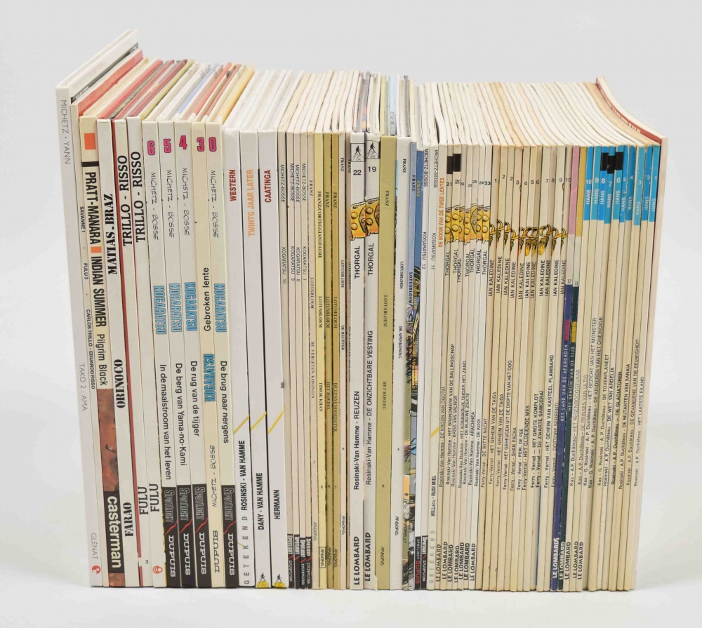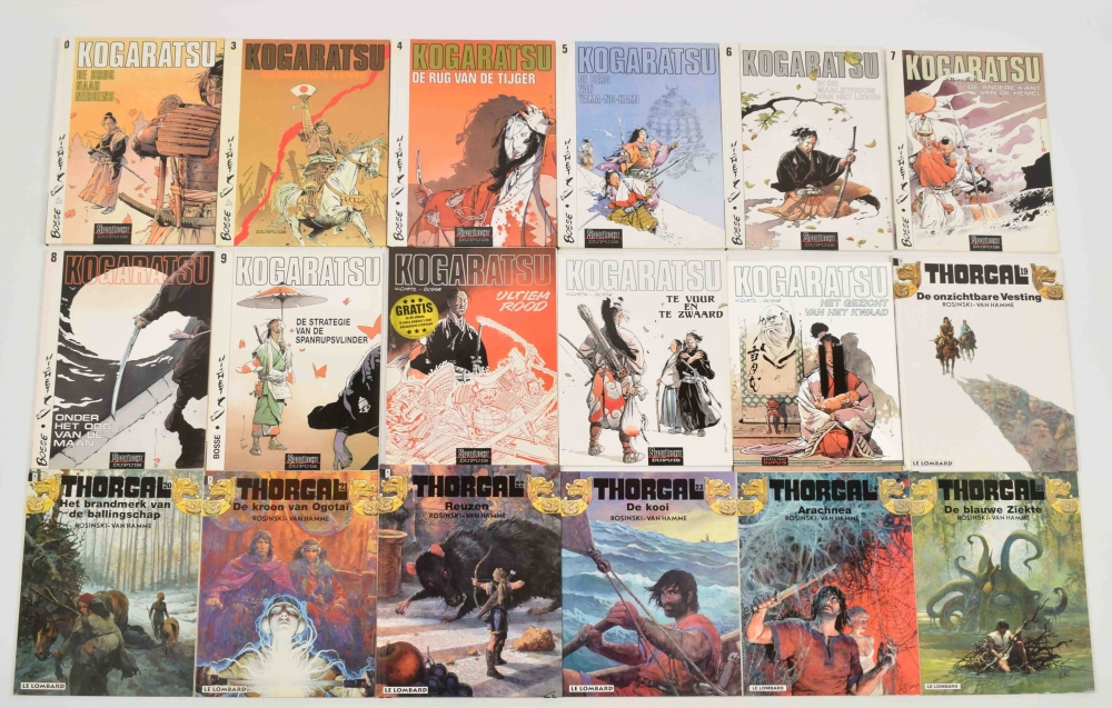 Michets. Kogaratsu 0 and 3-12, Dupuis, 1991-2010. Nr. 0 and 3-6 hc + 1 more by Michets + Rosinski. Thorgal 19-28, De Lombard, 1993-2004. No. 19 and 22 hc + Franz/ Faure. Lotusbloem 1-9, Armoris, no. 5 and 8 hc + 1 double + Getekend. Hermann Caatinga. De Lombard, 1997. Hc + 3 more from the series, of which 2x hc - and 29 more.