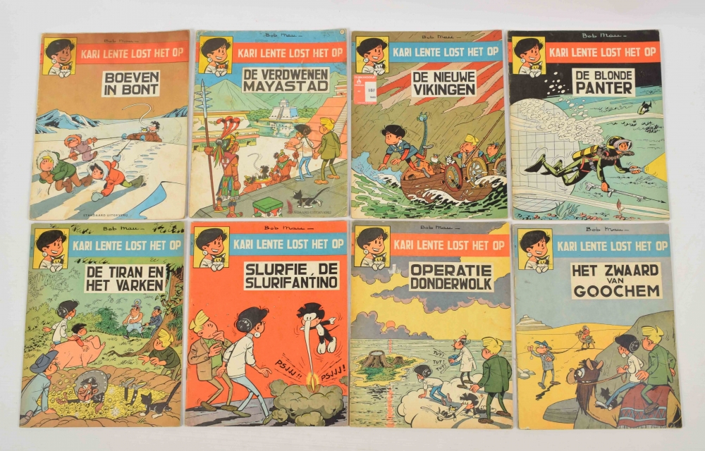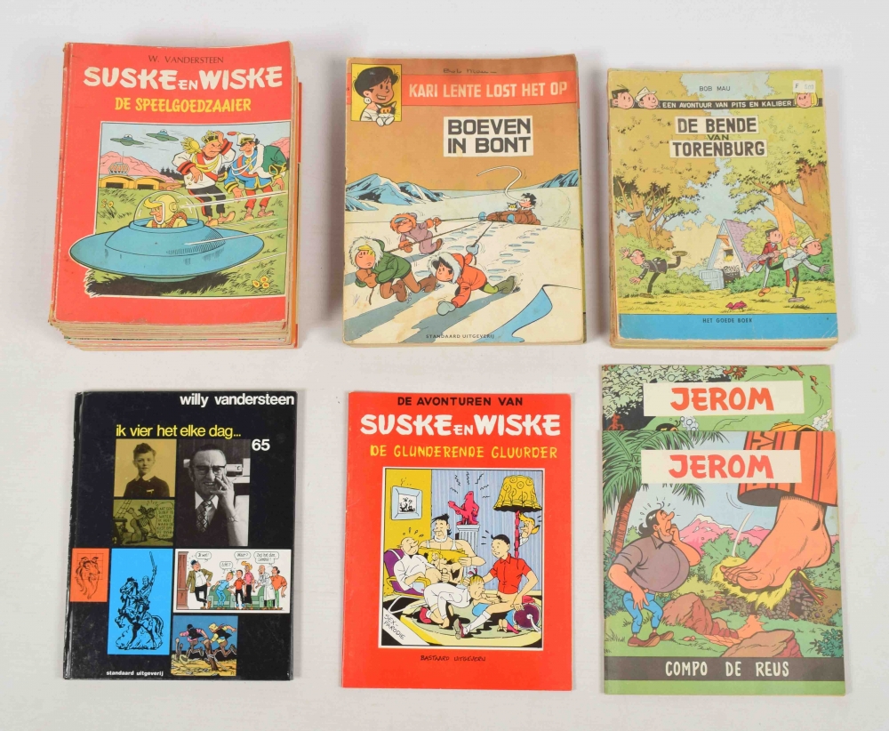 Jerom. De Stad onder Water. No. 8, Standaard, 1965 + Compo de Reus, 1966. Each in near-new condition + De Koddige Kater. Standaard, 1965. Fine copy + De Sprietatoom. Hollandse Twee-kleuren reeks vol. 31 - and another 10 vols. from the series with traces of use such as light damage to spine, small stain etc. - and 10 advertising eds. of Spike and Suzy. Added: Bob Mau: Een avontuur van Pits en Kaliber, 10 vols., het Goede boek - and 15 vols. of Kari Lent in varying condition.