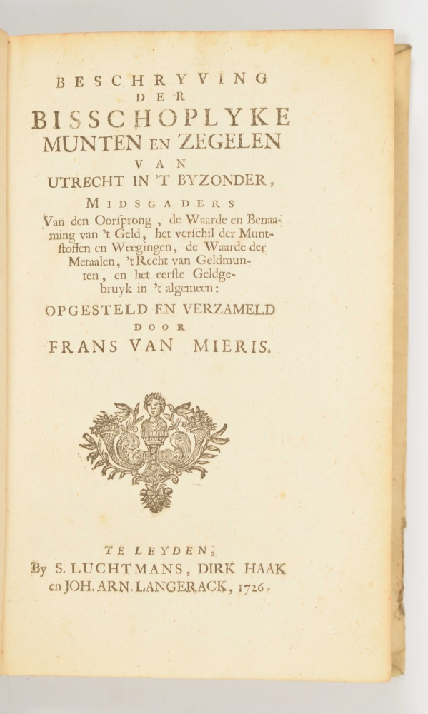 in 't byzonder. Mitsgaders van den oorsprong, de waarde en benaaming van 't geld, het verschil der muntstoffen en weegingen (...) verzameld door Frans van Mieris. Leyden, S. Luchtmans, 1726.