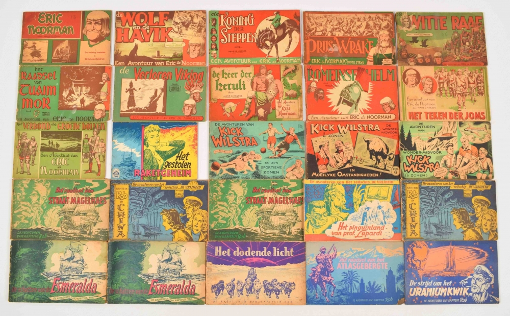Lot with 15 vols. of Eric de Noorman, 24 vols. of Kapitein Rob - and a later ed., 3 vols. of Kick Wilstra. Most in fairly good/ good condition. Several vols. double. Added: 40 vols. from the Jan Stavast Reeks, Van Ditmar, 1942-1944, incl. several vols. double.