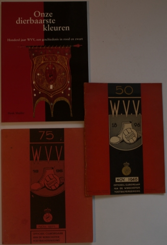 See the Dutch description: W.V.V. 50, 1896-1946. Geniet, 64 p. + W.V.V. 75, 112 p., gebrocheerde uitgave - en Onze dierbaarste kleuren, Honderd jaar WVV, een geschiedenis in rood en zwart, Henk Mulder, 104 p.