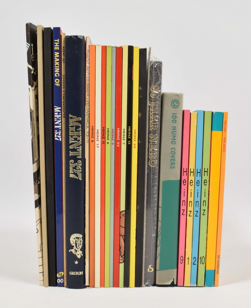 50 jaar Nero. Kroniek van een dagbladverschijnsel. Standaard uitgeverij, 1997. New, shrinkwrapped, with coin + The Making of Agent 327. Martin Lodewijk, M, 2003. Edition of 400 numbered and signed copies with accompanying original pencil sketch + Top Secret. Oberon, 1980. Hc in blue faux-leather and silver spine title + Heinz nos. 1, 2, 5-11, 13, 17, 22 and 24. Windig & De Jong, Gezellig & Leuk, 1988-2006 - and 9 more.