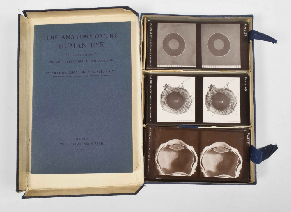 as Illustrated by Enlarged Stereoscopic Photographs by Arthur Thomson. Oxford, at the Clarendon Press, 1912. 132 pp. With 67 stereo cards. Clarendon Press, US, 1912. In cloth cassette (dam. to edges).