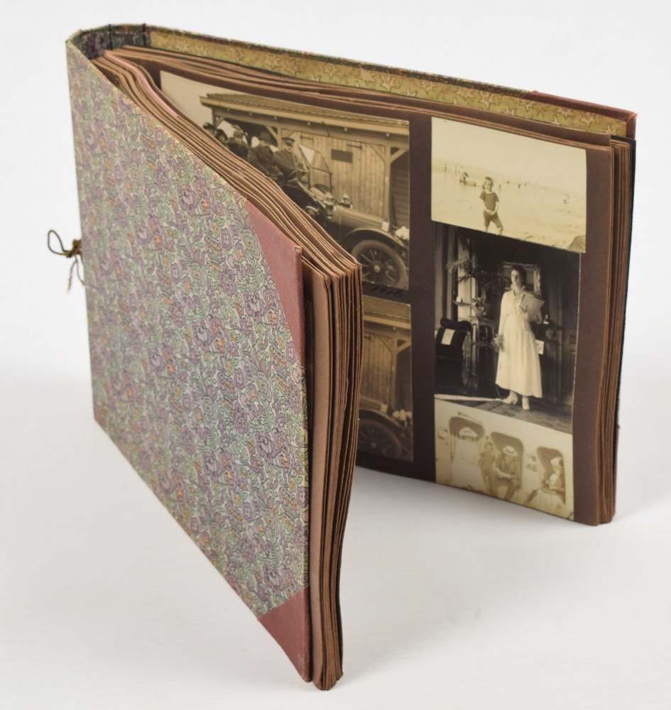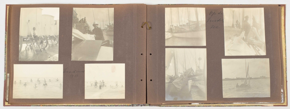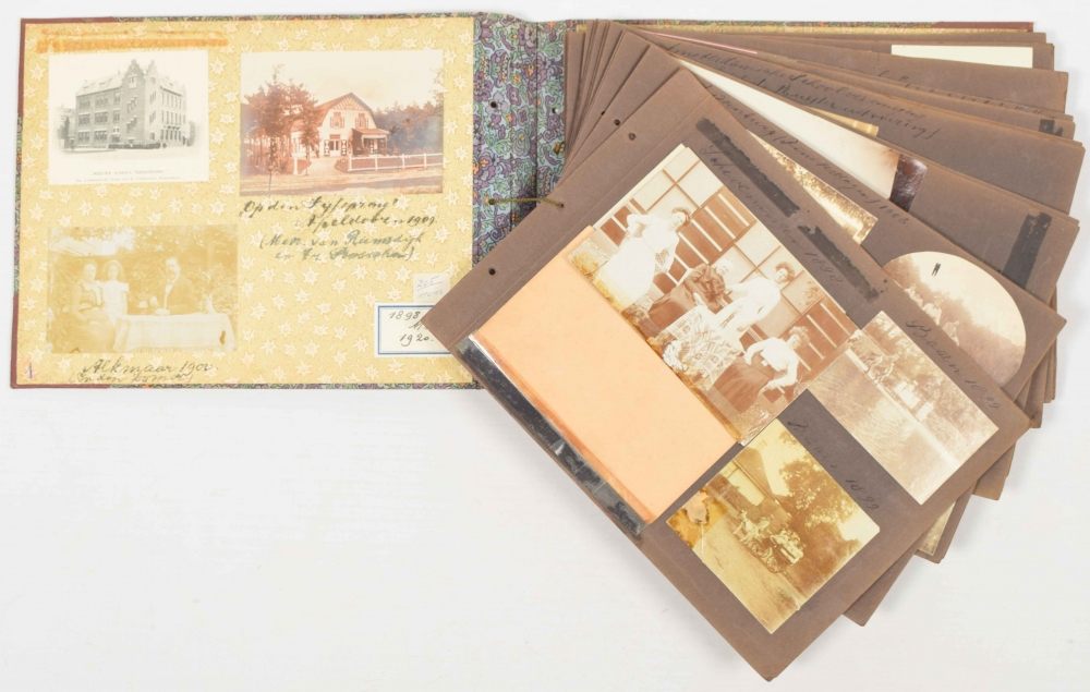 (incl. several picture postcards), various sizes, with captions conc. the location (and often with names of persons depicted) and dated 1898-1920, contemporary cordbound cloth, oblong 4to size.