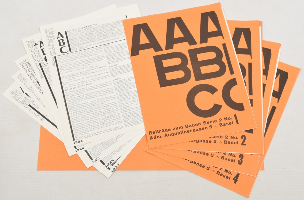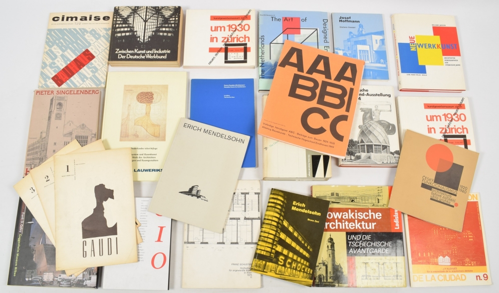 Mit einer Basis-Bibliographie deutschsprachiger Architekturpublikationen 1918-1933. Roland Jaeger. Berlin, Gebr. Mann, 1998. Cloth with dust jacket. With mounted ms. message by the author + Volledige heruitgave ABC. Beiträge zum Bauen 1924-1928. Eindhoven, Technische Hogeschool Eindhoven, 1969. Loose-leafed issues in file + Gaudi. Un Precursore. Brunati Mendini Villa no. 1. Milan, Studio di Architettura, c. 1960. Stapled + nos. 2 (Mendelsohn) and 3 (Steiner) from the same series - and 19 more.