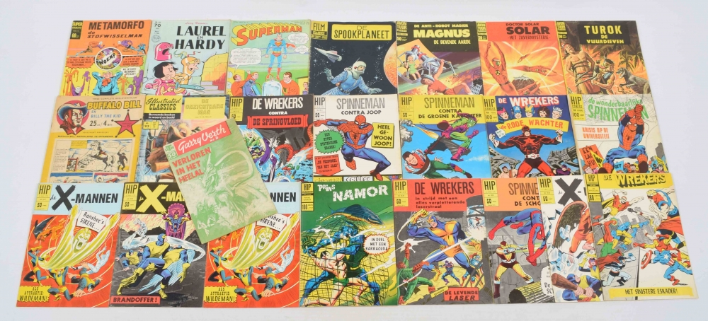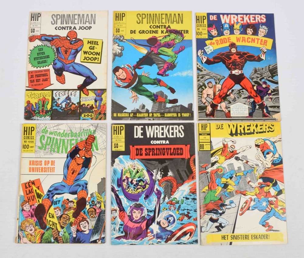 Lot with 13 Hip Comics incl. 4x Spinneman and the first Dutch edition of The Avengers: De Wrekers contra de Springvloed - and another 11 classics/ comics, incl. Superman April 1966 and Metamorfo de Stofwisselman no. 2405.