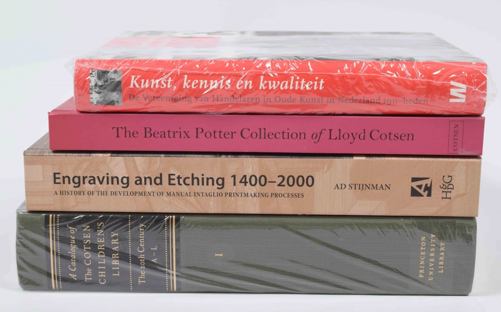 A history of the development of manual intaglio printmaking processes. Ad Stijnman. London, Archetype/ Houten, Hes & De Graaf, 2012. Bound. 658 p. + The Beatrix Potter Collection of Lloyd Cotsen. Published on the Occasion of his 75th Birthday. Margit Sperling Cotsen. Cotsen Occasional Press, 2004. Bound, oblong folio + A Catalogue of the Cotsen Children's Library I: The 20th Century A-L. Princeton University Library, 2000. New, sealed - and 1 more.