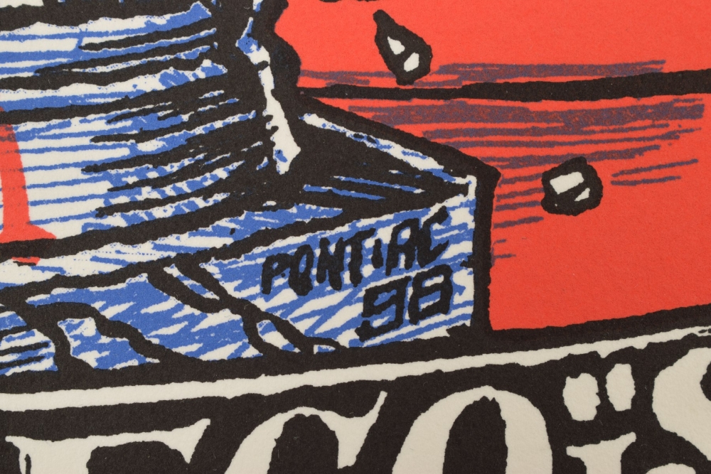 Commissioned screen print by Pontiac for a deceased anarchist friend. Edition of 60 copies distributed among a small circle. These are nos. 40 through 60 from that edition. (total 21)