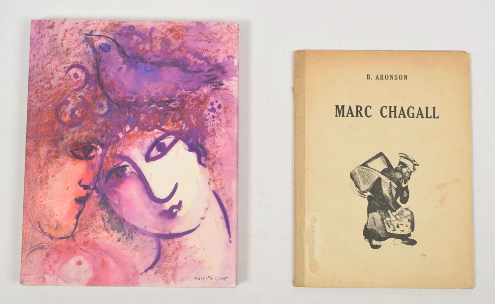 Das Graphische Werk. Hatje, Stuttgart, 1957. xxxix, (1), 151, (1) pp. Bound with dust jacket. Clean copy. With 4 collotypes. In cassette + B. Aronson. Marc Chagall. Razum Verlag, 1924. 32 pp. Sl. shaky in binding, else good.