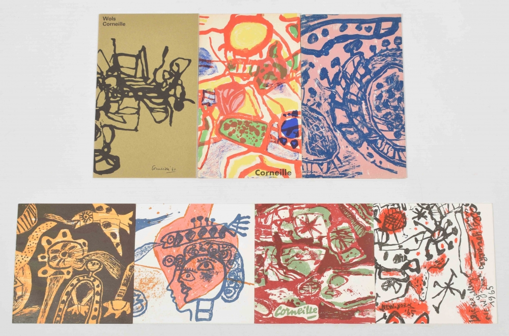 Wols/ Corneille. Galerie Mathias Fels, Paris, 1961. Edition of 500 copies. Lithographed wrapper + Corneille. Gouaches récentes. Galerie Mathias Fels, Paris, 1964. Edition of 800 copies. 5 lithographs incl. wrapper + Lefebre 1964, 1965, 1970 and 1971, each with folding lithographed wrapper.