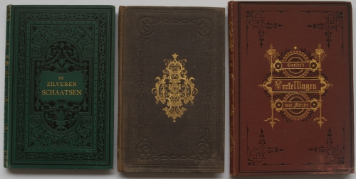 See the Dutch description: P.J. Andriessen, De Zilveren Schaatsen. Een Schets uit het Noord-Hollandsche Volksleven. D.B. Centen, Amsterdam, 199 p. Met 4 platen in kleur. + S.J. van de Bergh e.a., Prettig en Nuttig Bezig Zijn. D. Noothoven van Goor, Leiden, 128 p. Met 6 staalgravures in kleur. + M.C. Frank, Goethe's Vertellingen voor Meisjes. D. Noothoven van Goor, Leiden, 126 p. Met 4 platen in kleur. Allen gebonden in mooi bewerkte band.