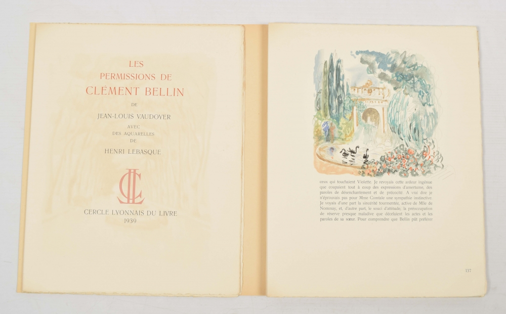 Avec des aquarelles de Henri Lebasque. No place, Cercle Lyonnais du Livre, 1939, printed in 140 numbered copies (this is no. V printed in name of the author, Jean-Louis Vaudoyer, one of 25 Roman-numbered copies "a la disposition du comité"), 223,(2) p., with 44 coloured illustrations, in loose quires as issued in original wrapper, folio, in halfpercale chemise and (partly faded) cardboard slipcase.