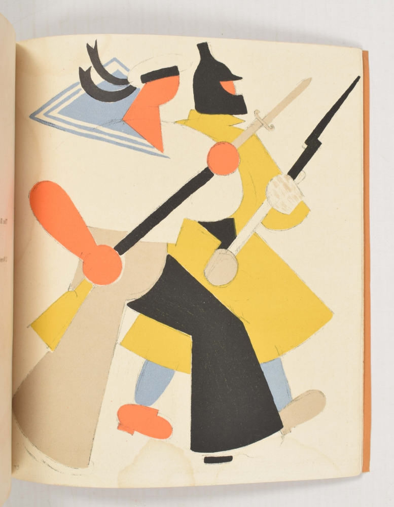 The second plate lacks the descriptive tissue (replaced by tissue without the text); from plate 16 on waterstained in tail margin. "The series of placards reproduced in this book were executed by Wladimir Lebedeff for the show-windows of the Russian Telegraph Agency (ROSTA) in Petersburg for agitation purposes. The present edition is the first part of the series illustrating the Russian placards; the second will be published in a short time" (which did not happen).