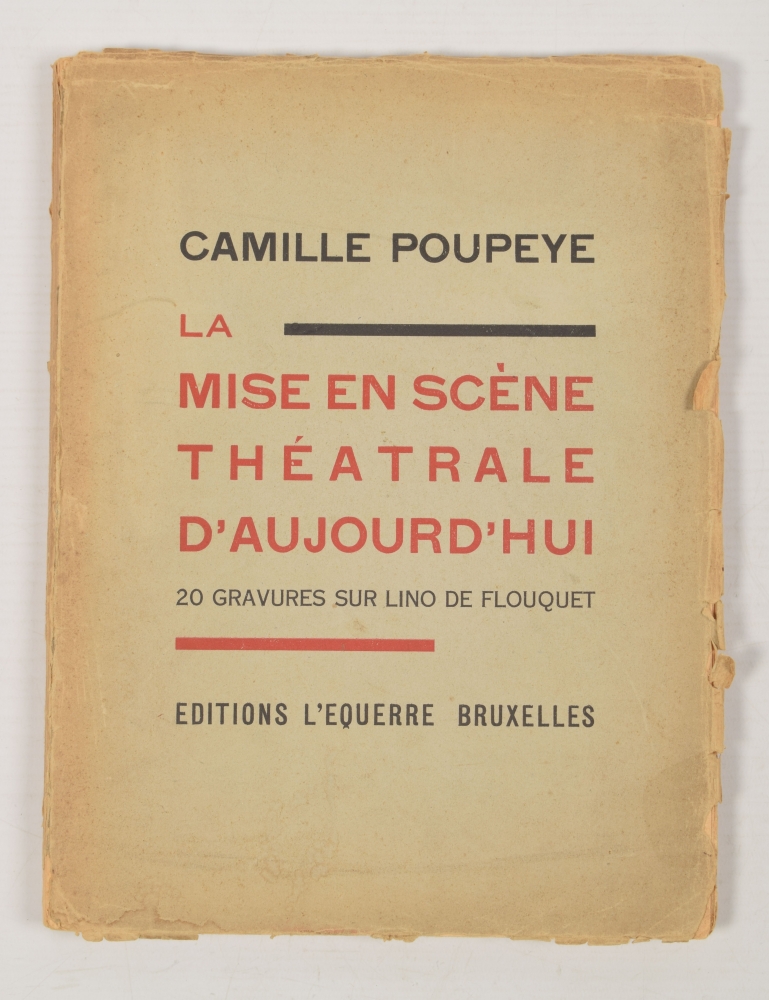 20 gravures sur lino de Flouquet. Brussels, Editions l'Equerre, 1927. In paper wrapper. Wood engravings complete. Wrapper frayed at edges, spine ends damaged and title page with pencil ann.