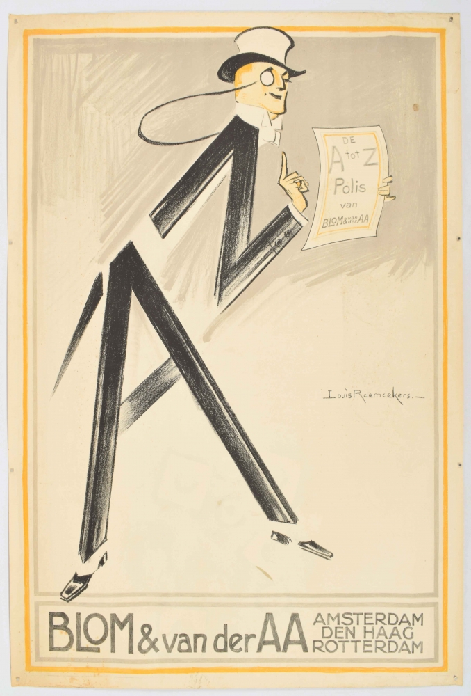 Blom en Van der Aa, De A tot Z Polis. Circa 1925. 126 x 85 cm. Traces of airbrush to reverse. Front with occ. small foxed spot. Good copy.