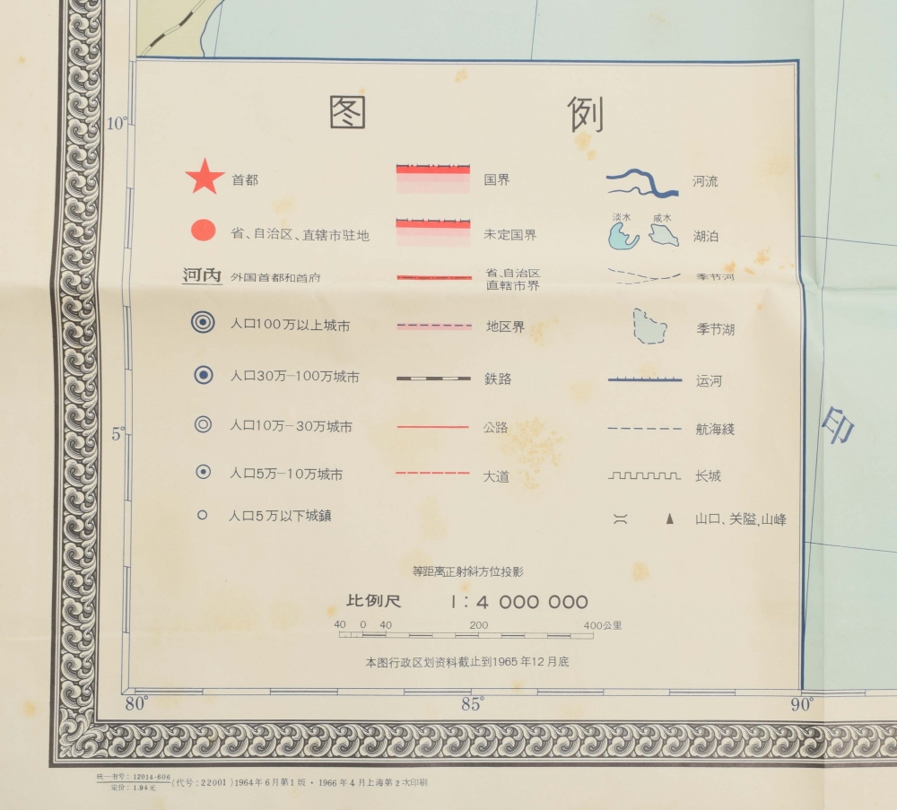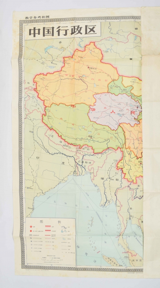 Large coloured map of China and neighbouring nations, Japan, 1965. 1:400000. 152 x 156 cm. Folded.