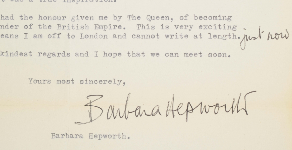 [Letter. Sculpture] Barbara Hepworth (1903-1975)