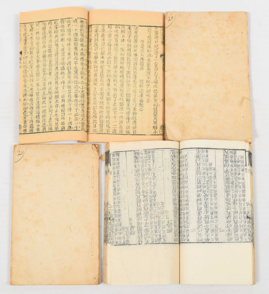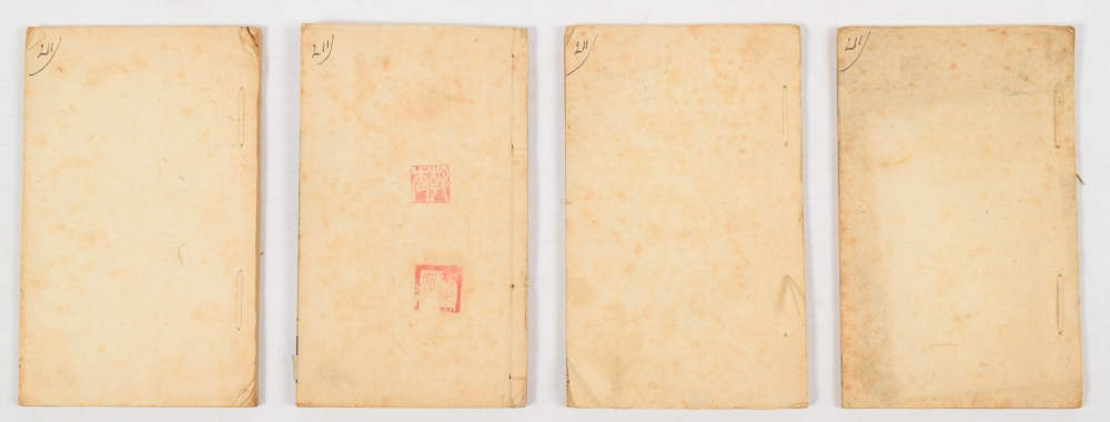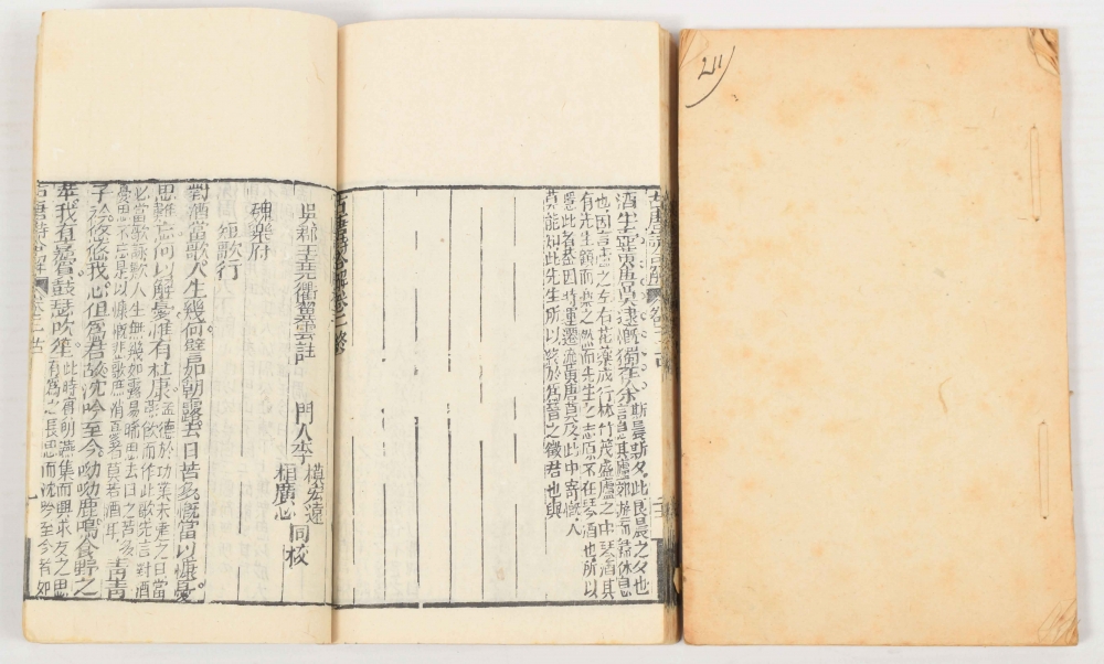 Gu Tang shi he jie. Early 19th-century impression of this poetic work on the Tang dynasty (618-907). Bound in early 20th-century paper with red owner's stamp.