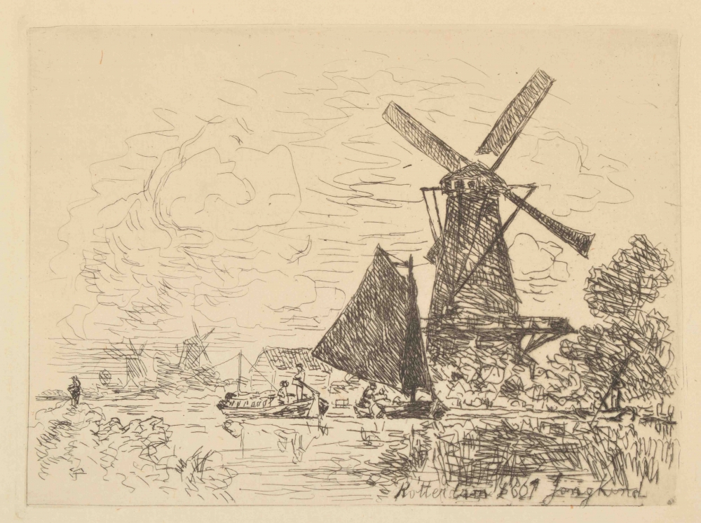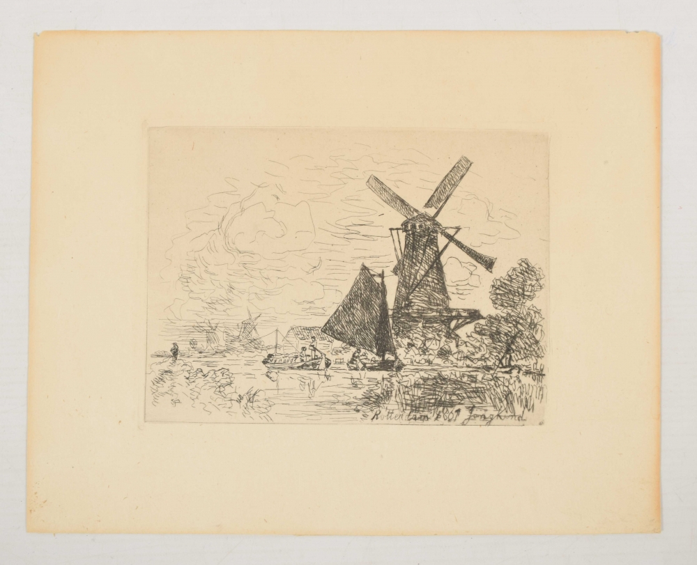 "Rotterdam''. Drypoint. 19 x 14.5 cm. Wide margins. Good copy.