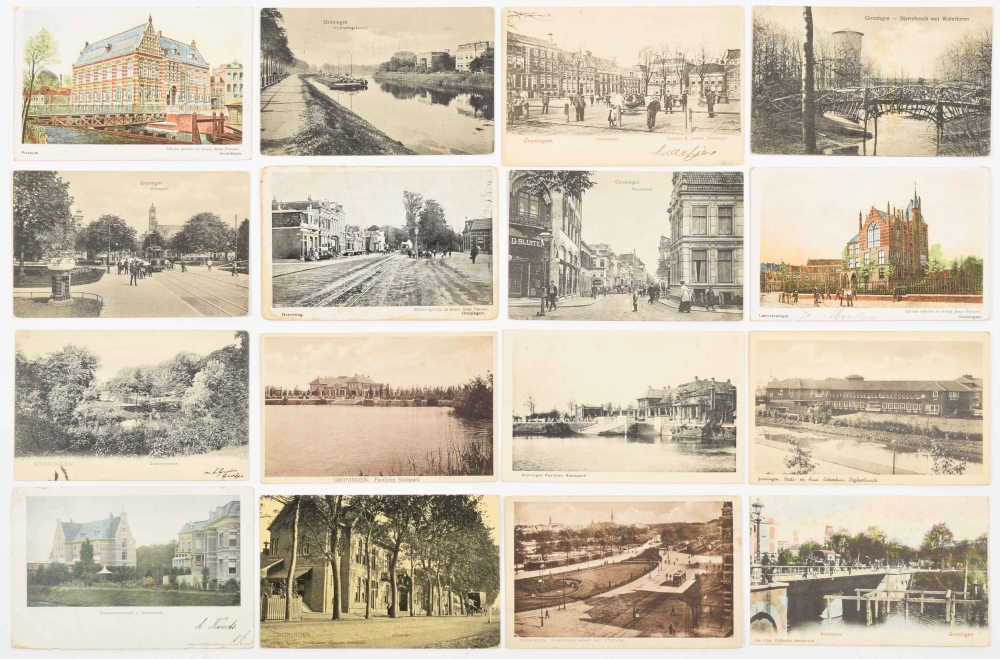 Collection of ± 100 topographic postcards related to the Dutch city of Groningen. 1900-1960.