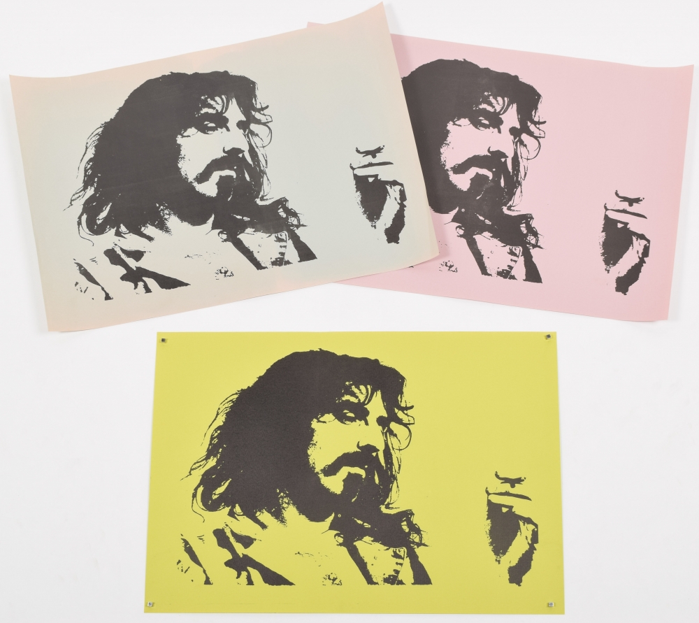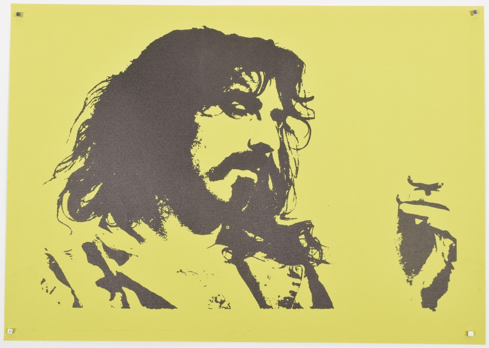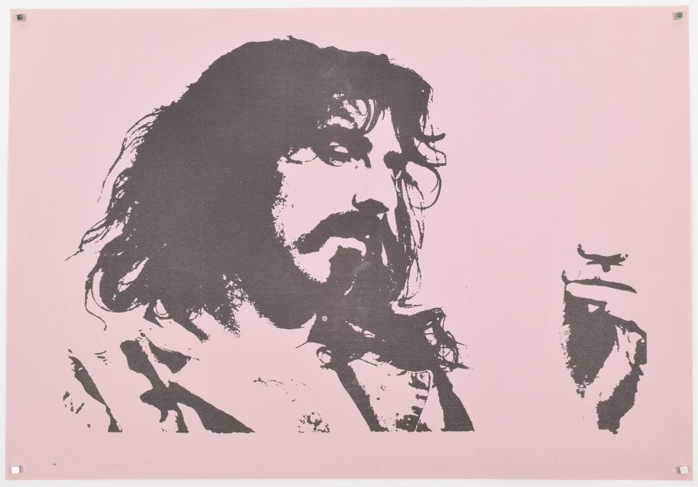 Silk-screen print on green, grey and purple background. Publication unknown.