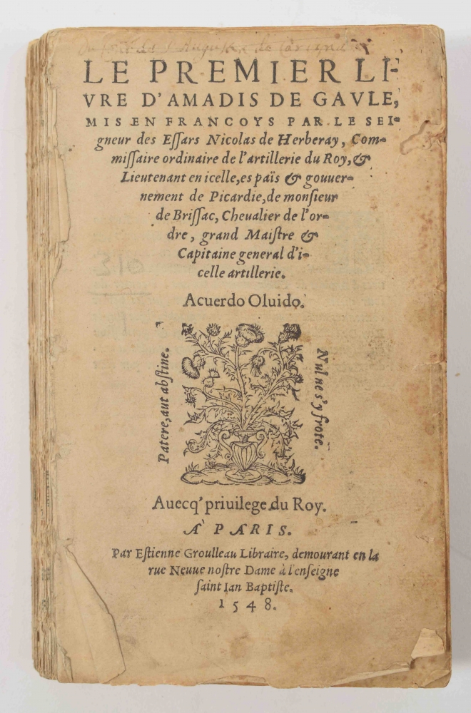 mis en Francoys par le Seigneur des Essars Nicolas de Herberay [attributed to Garci Rodríguez de Montalvo]. Paris, Etienne Groulleau, 1548 [colophon last leaf 1547].