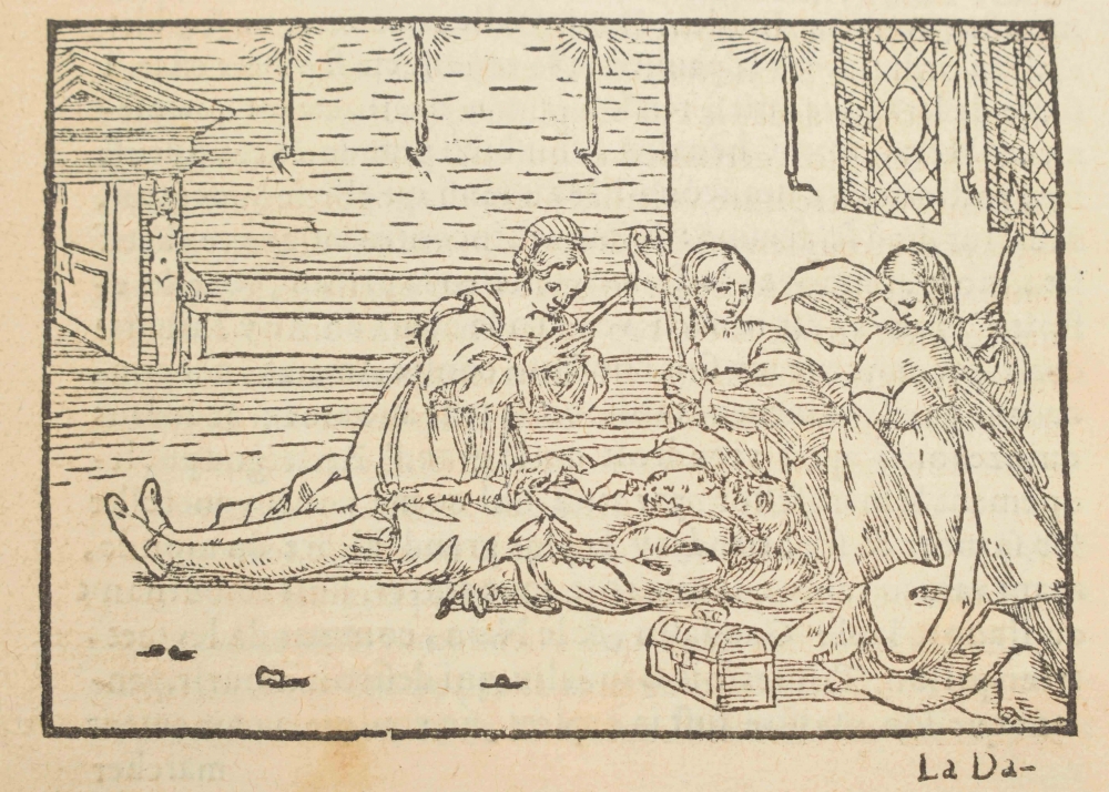 Small 8vo, title page with woodcut printer's mark, (8), 191, (1) ff. Title page and the 25 quires loose, no wrapper, numerous capitals in woodcut, 18 woodcut illus. in the text. Lacks f. 16; title page with small stain, ann. in ms. and minor dam.