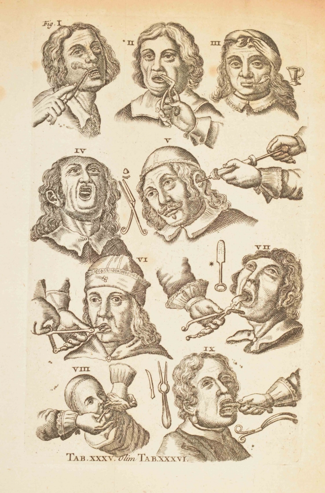 Waar in alle de kunstbewerkingen en afbeeldingen der werktuigen tot de heelkunst nodig, gevonden worden. Als meede deszelfs aanmerkingen, en hondert heel-kundige waarnemingen, verzamelt van Johannes Baptista van Lamzweerde. Waar by gevoegt zyn twee aanhangsels (...) van (...) Nederlandsche genees- en heelkundigen. En (...) Pieter Adriaansze Verduin. Beneffens een kort begrip of te inleiding tot de chirurgie. Alles na de laaste Latynsche druk in 't Nederduitsch vertaalt (...) opgeheldert en vermeerdert door Gerardus Dicten (...) Chirurgyn te Leyden. Amsterdam, bij de Janssoons van Waesberge, 1748, 2 vols., (42),548; (4),551-1094,(84) p., with engraved frontispiece and 86 folding plates, finely bound in old style in modern uniform green morocco.