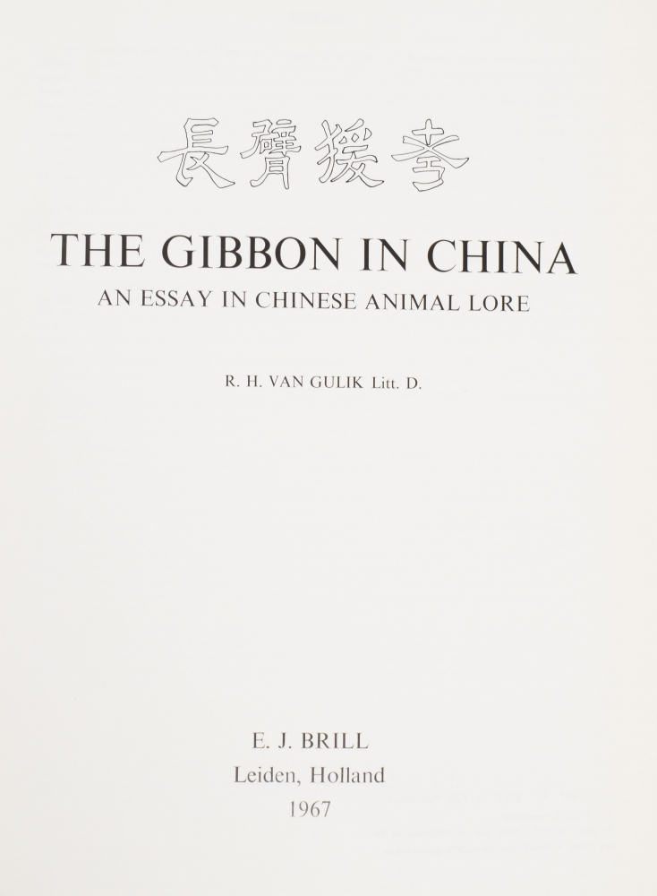 The Gibbon in China. An essay in Chinese animal lore. Leiden, E.J. Brill, 1967. 124 pp., cloth.