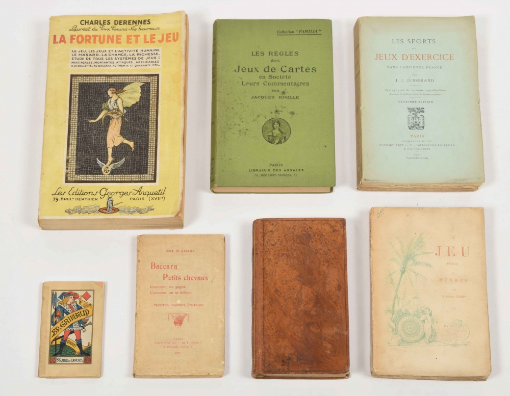J.J. Jusserand. 2nd ed. Paris, Librairie Plon, 1901. 474,(2) p. Original wrapper. Spine toned and with a few small tears. With inlaid school prize Brussels 1922 -1923 + La fortune et le jeu. Charles Derennes. Paris, Georges-Anquetil, 1926. 465,(15) p. Orig. wrapper. Wrapper soiled, back lacks top-right corner, bookplate + Le jeu public et Monaco. Le docteur Prompt. Paris, E. Dentu, 1882. x,293,(6) p. Wrapper soiled, spine torn in along edges and with tape restoration, bookplate + game rulebook by B.P. Grimaud, Paris (back loose) - and 3 more.